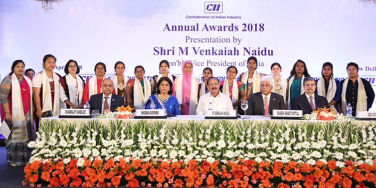 The Vice President of India, Shri M. Venkaiah Naidu, presented the three grassroots women leaders with the CII Foundation Woman Exemplar Award 2018 ...